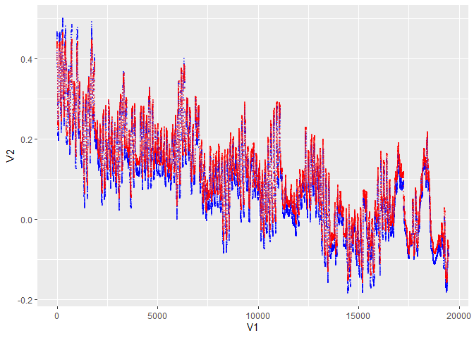ggplot(plot_data, aes(x = V1, y = V2)) + geom_point( colour = "blue", size = 0.1,alpha=0.4)